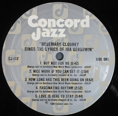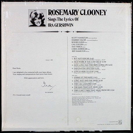 Rosemary Clooney ローズマリー・クルーニー / Sings The Lyrics Of Ira Gershwin シングス・ザ・リリックス・オブ・アイラ・ガーシュウィン