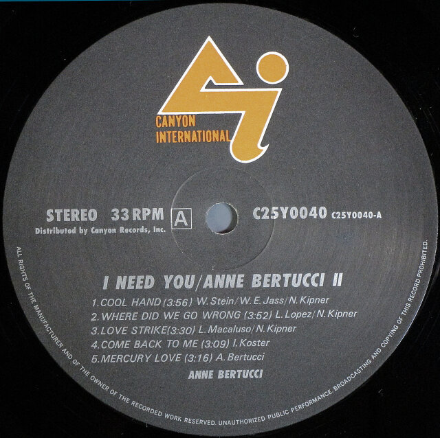 Anne Bertucci アン・ベルトゥッチ / I Need You Anne Bertucci II アイ・ニード・ユー