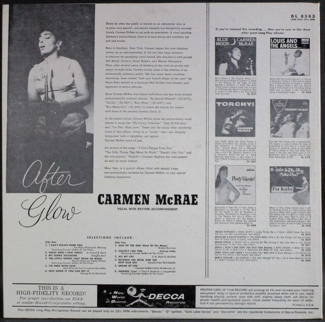 Carmen McRae カーメン・マクレエ / After Glow アフター・グロウ