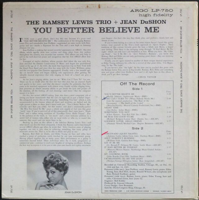 Ramsey Lewis Trio + Jean DuShon ラムゼイ・ルイス、ジーン・デュション / You Better Believe Me
