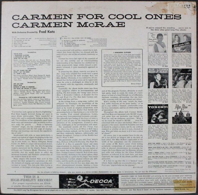 Carmen McRae カーメン・マクレエ / Carmen For Cool Ones カーメン・フォー・クール・ワンズ | Promo