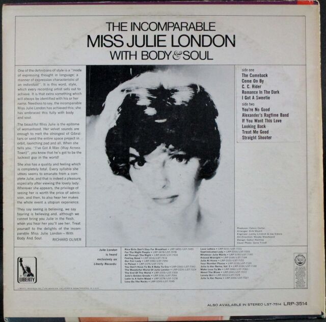 Julie London ジュリー・ロンドン / With Body & Soul ウィズ・ボディ・アンド・ソウル