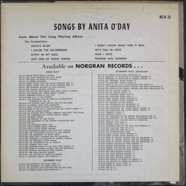 Anita O'Day アニタ・オデイ / Songs By Anita O'Day ソングス・バイ・アニタ・オディ| 10"