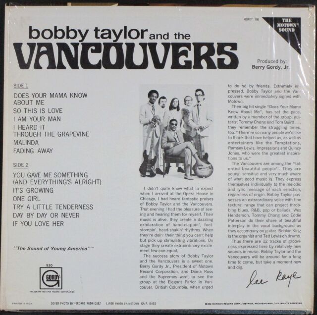 Bobby Taylor & The Vancouvers ボビー・テイラー&ザ・ヴァンクーヴァーズ / Bobby Taylor And The Vancouvers