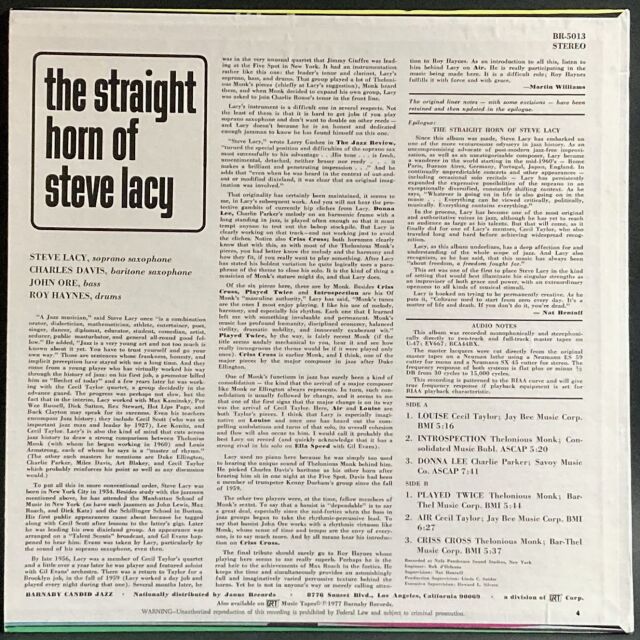 Steve Lacy スティーブ・レイシー / The Straight Horn Of Steve Lacy ザ・ストレート・ホーン・オブ・スティーヴ・レイシー