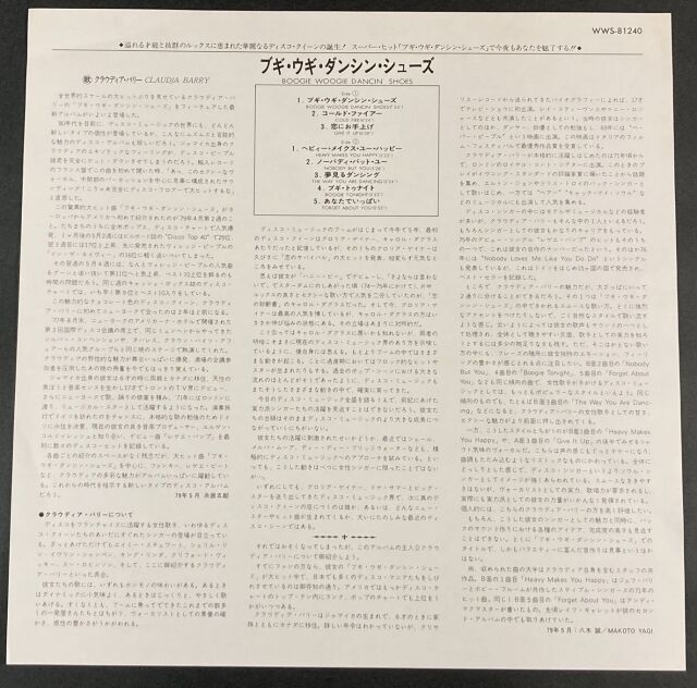 Claudja Barry クラウディア・バリー / Boogie Woogie Dancin' Shoes ブギ・ウギ・ダンシン・シューズ