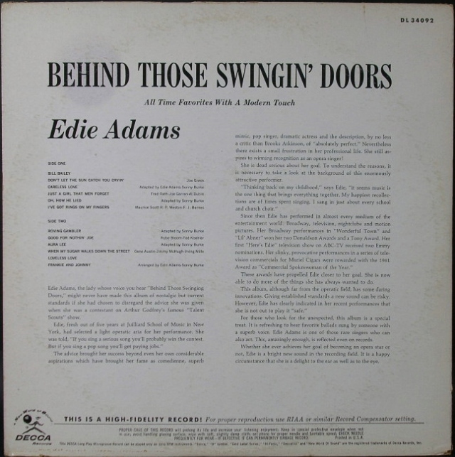 Edie Adams イーディー・アダムス / Behind Those Swingin' Doors